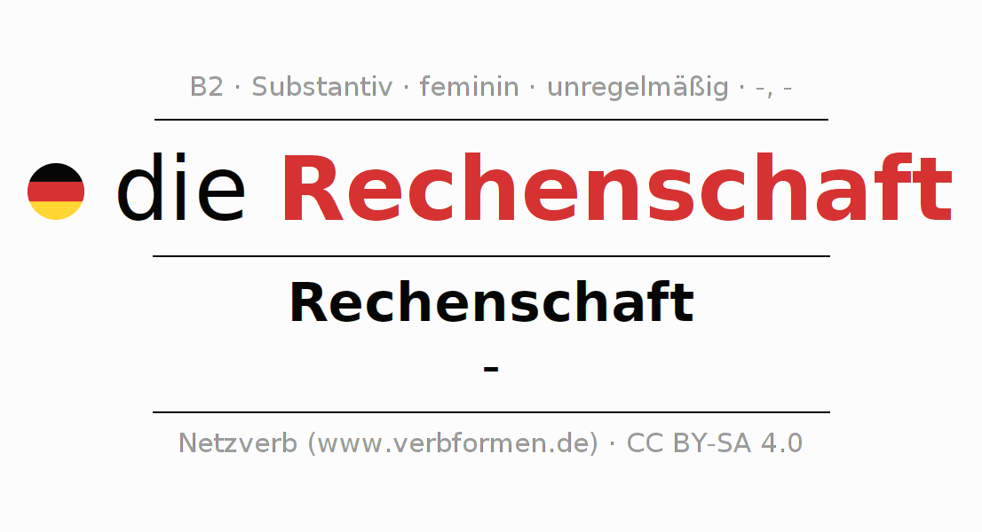 - Singular: die Rechenschaft, der Rechenschaft, der Rechenschaft, die Rechenschaft