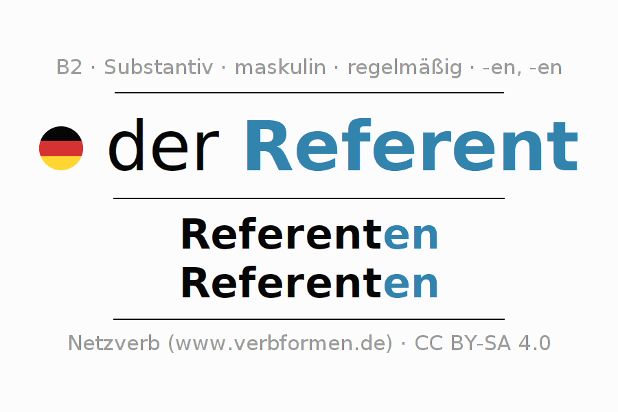 - Plural: die Referenten, der Referenten, den Referenten, die Referenten