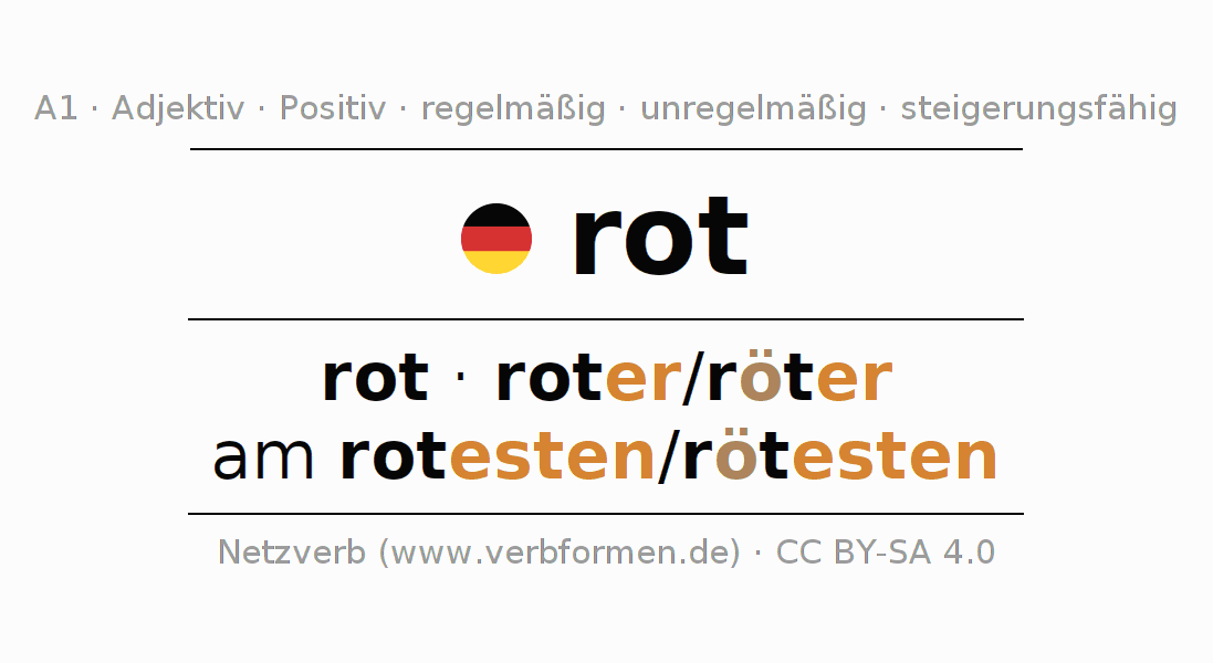 Deklinations- und Komparationsformen von rot