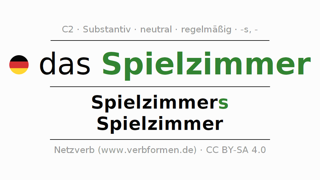 - Singular: das Spielzimmer, des Spielzimmers, dem Spielzimmer, das Spielzimmer