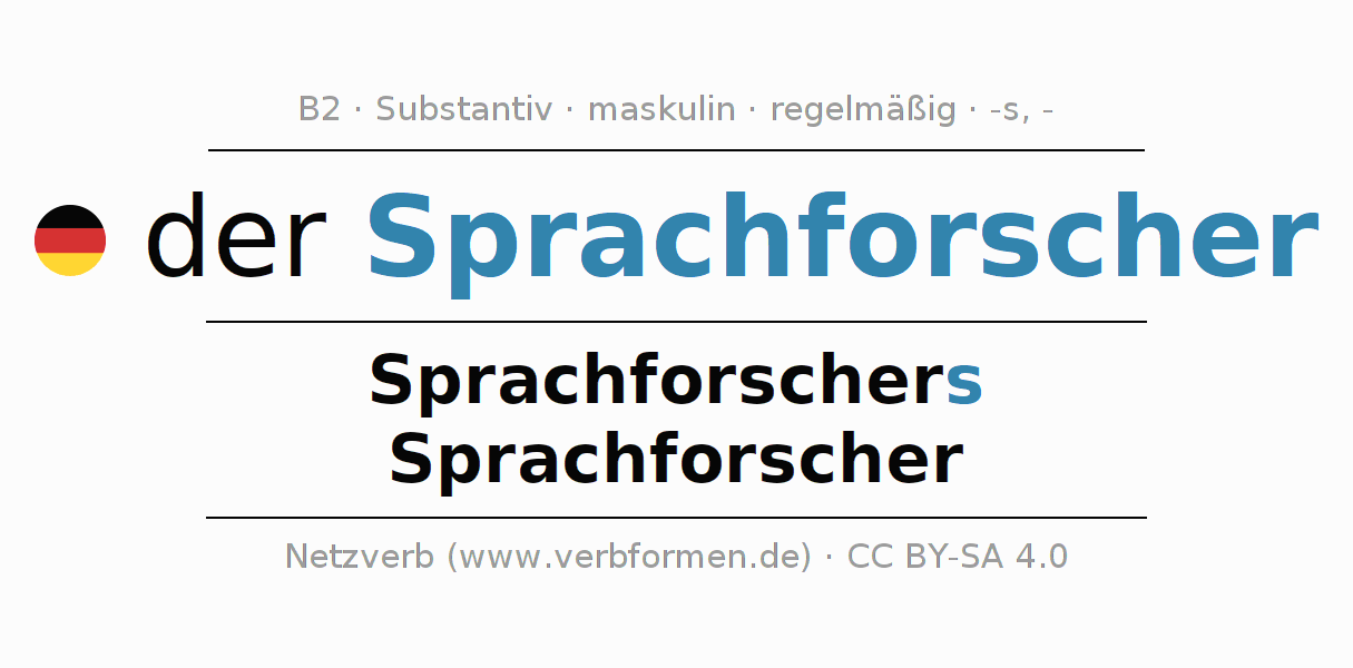 - Plural: die Sprachforscher, der Sprachforscher, den Sprachforschern, die Sprachforscher