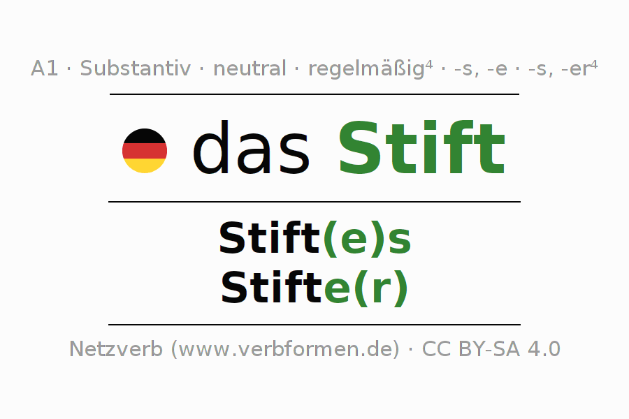 - Plural: die Stifte(r), der Stifte(r), den Stifte(r)n, die Stifte(r)