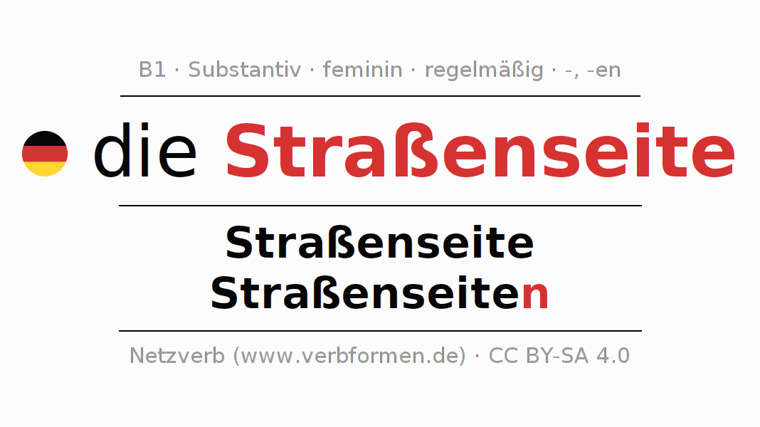 - Singular: die Straßenseite, der Straßenseite, der Straßenseite, die Straßenseite