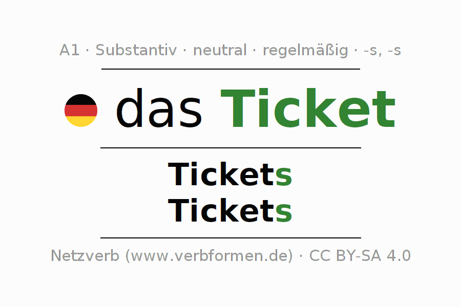 - Plural: die Tickets, der Tickets, den Tickets, die Tickets