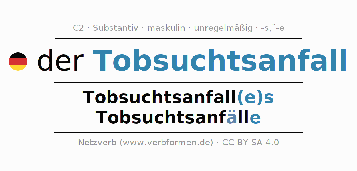 | Nom. | der Tobsuchtsanfall | die Tobsuchtsanfälle |