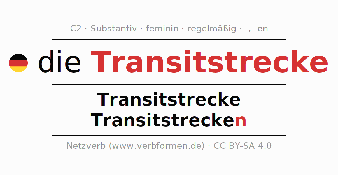 - Singular: die Transitstrecke, der Transitstrecke, der Transitstrecke, die Transitstrecke