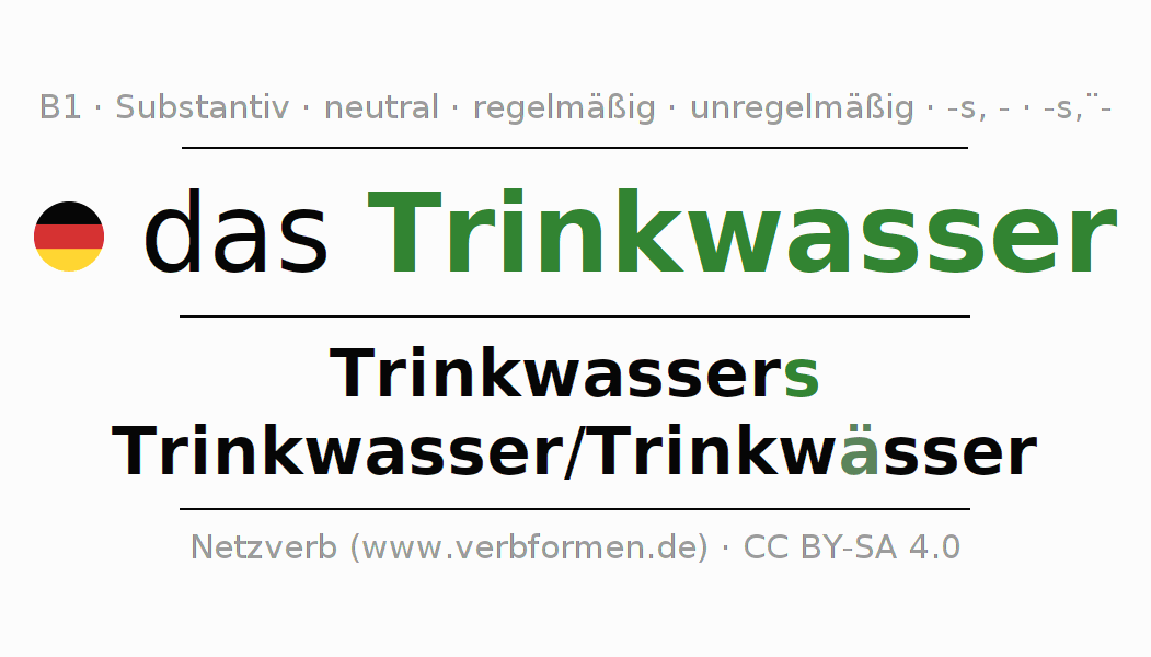 | Akk. | das Trinkwasser | die Trinkwasser/Trinkwässer |