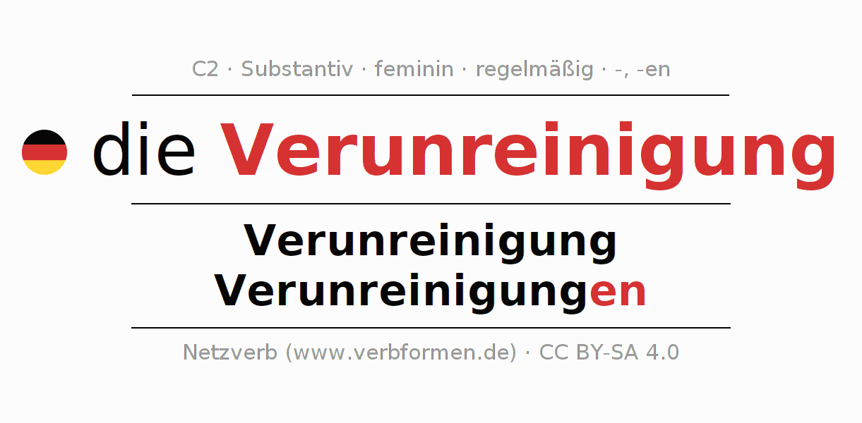 - Singular: die Verunreinigung, der Verunreinigung, der Verunreinigung, die Verunreinigung