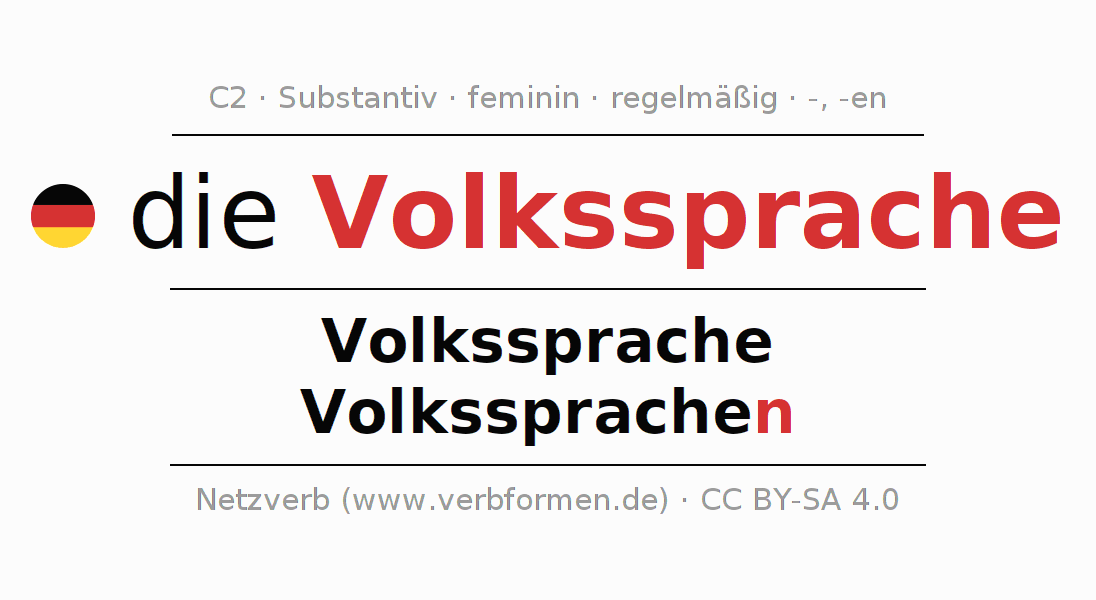 - Singular: die Volkssprache, der Volkssprache, der Volkssprache, die Volkssprache