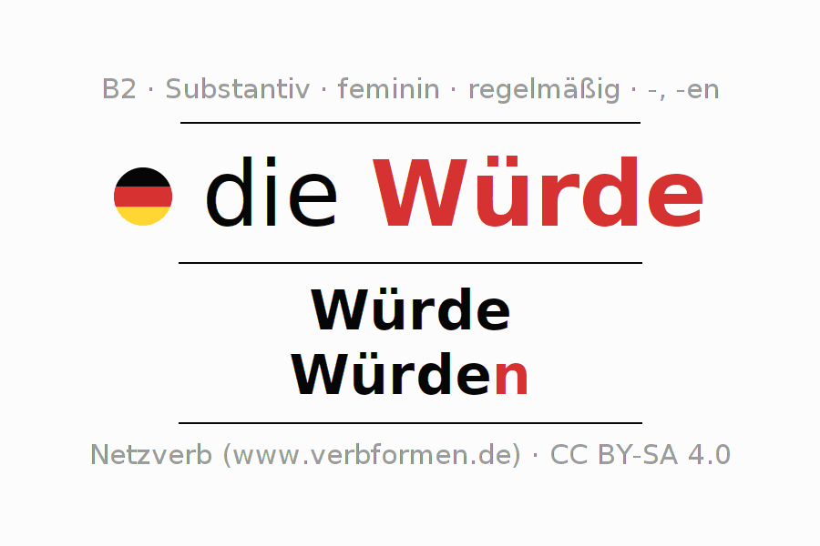 - Singular: die Würde, der Würde, der Würde, die Würde