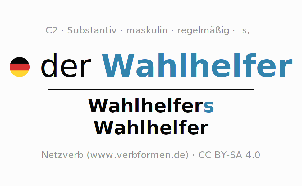 - Singular: der Wahlhelfer, des Wahlhelfers, dem Wahlhelfer, den Wahlhelfer