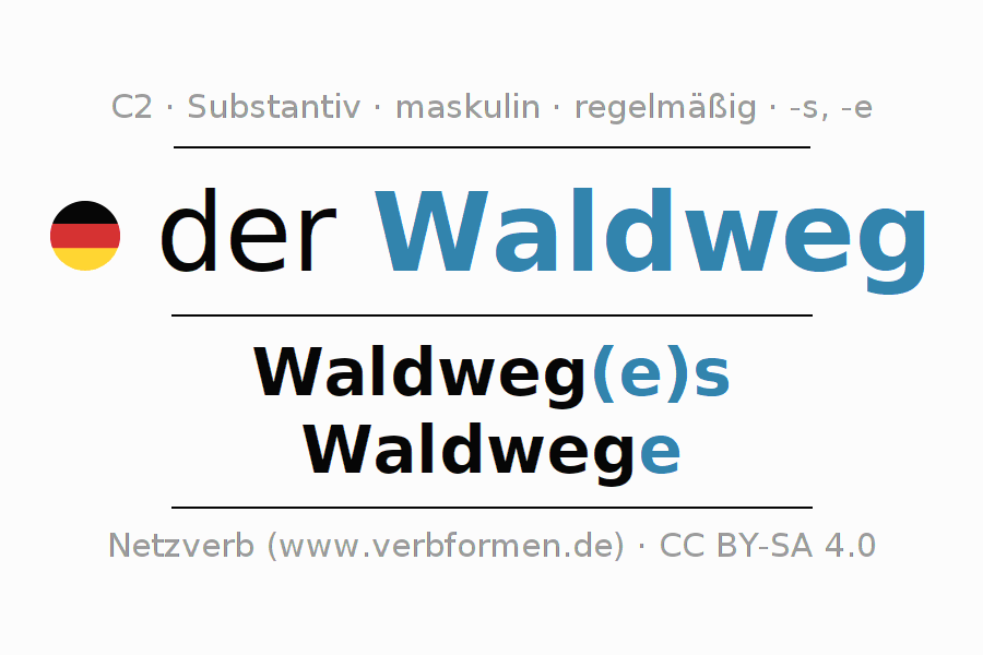 - Singular: der Waldweg, des Waldweg(e)s, dem Waldweg(e), den Waldweg
