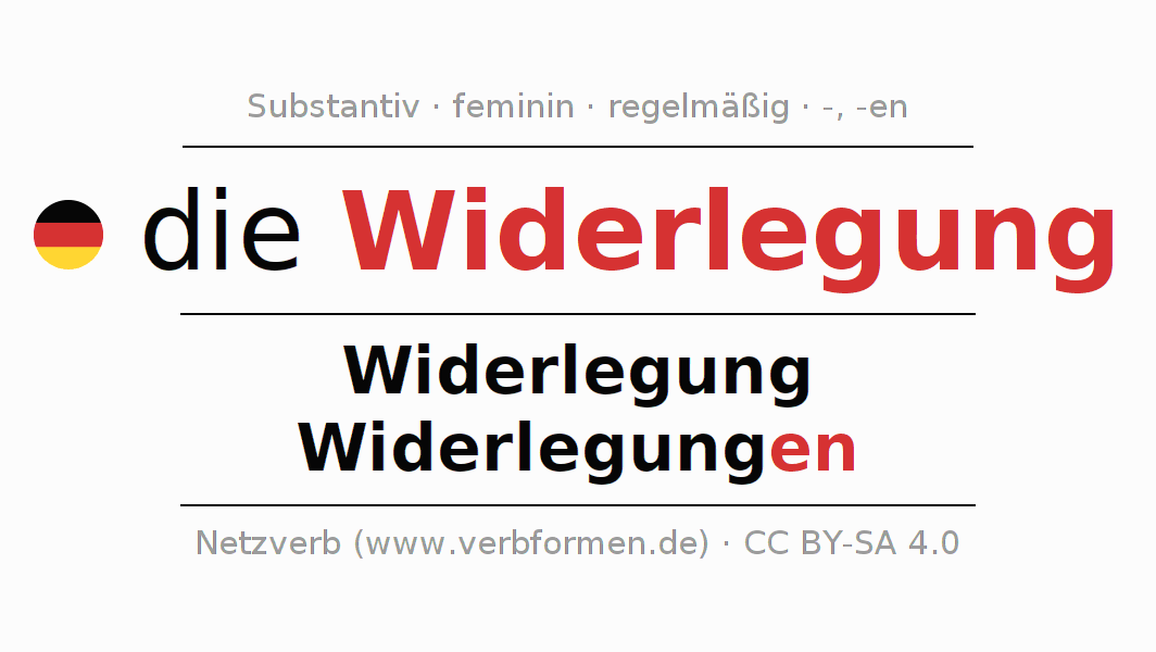 - Singular: die Widerlegung, der Widerlegung, der Widerlegung, die Widerlegung