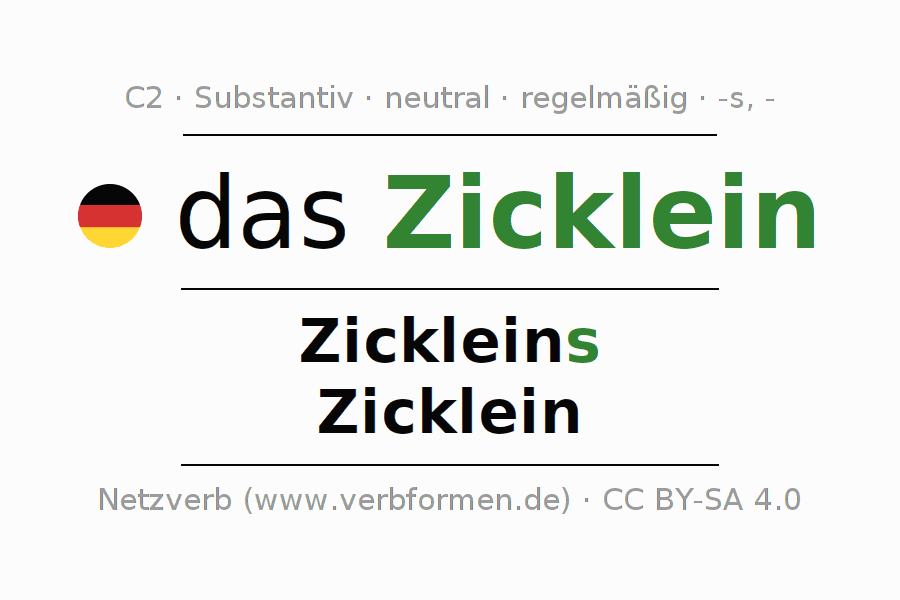 - Singular: das Zicklein, des Zickleins, dem Zicklein, das Zicklein