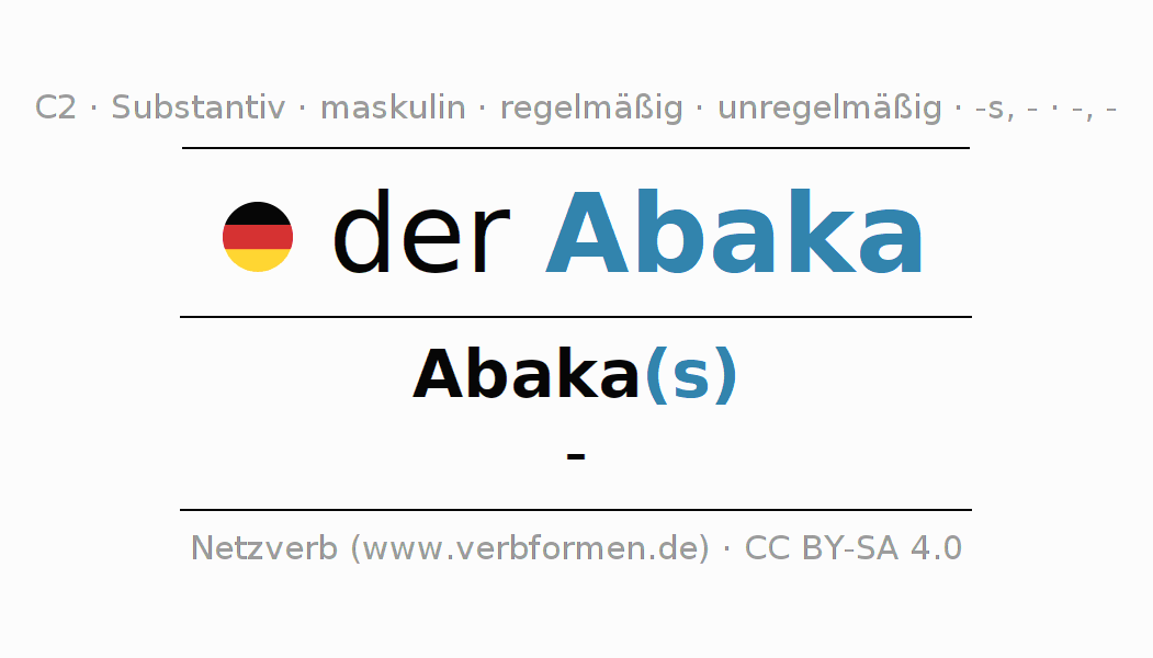 - Singular: der Abaka, des Abaka(s), dem Abaka, den Abaka