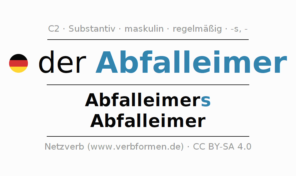 - Singular: der Abfalleimer, des Abfalleimers, dem Abfalleimer, den Abfalleimer