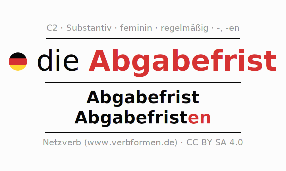 - Singular: die Abgabefrist, der Abgabefrist, der Abgabefrist, die Abgabefrist