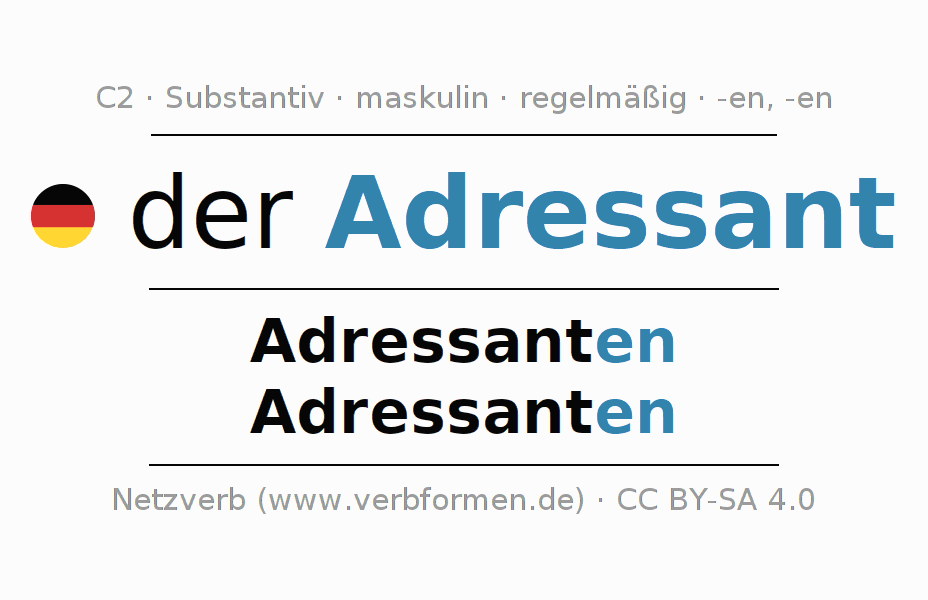 - Plural: die Adressanten, der Adressanten, den Adressanten, die Adressanten