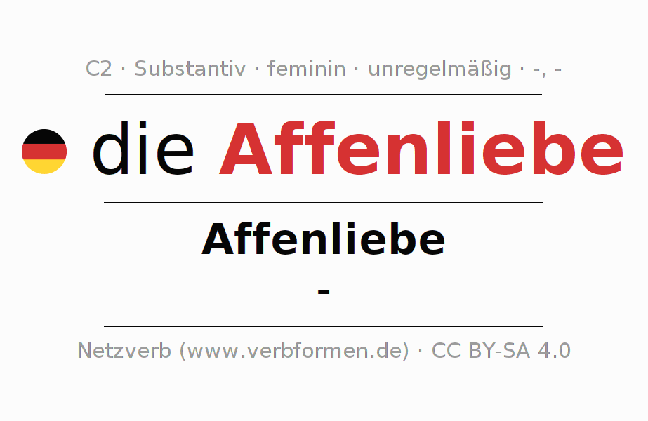 - Singular: die Affenliebe, der Affenliebe, der Affenliebe, die Affenliebe