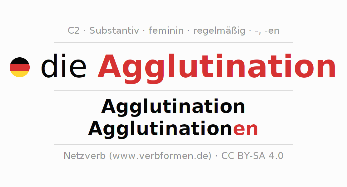 - Singular: die Agglutination, der Agglutination, der Agglutination, die Agglutination