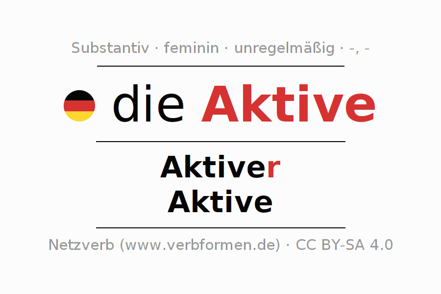 - Singular: die Aktive, der Aktiven, der Aktiven, die Aktive