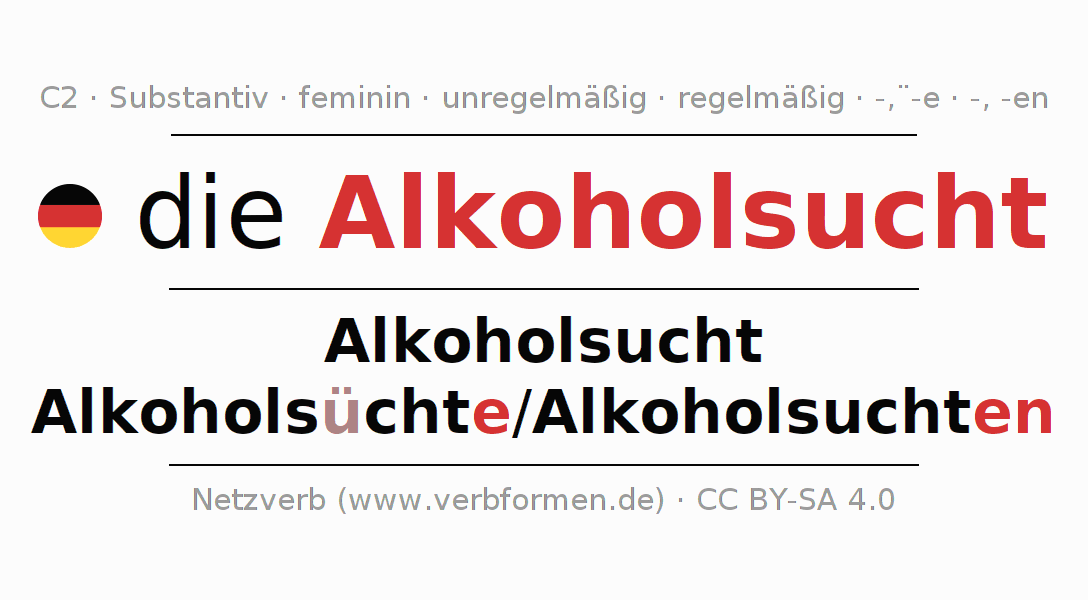 - Singular: die Alkoholsucht, der Alkoholsucht, der Alkoholsucht, die Alkoholsucht