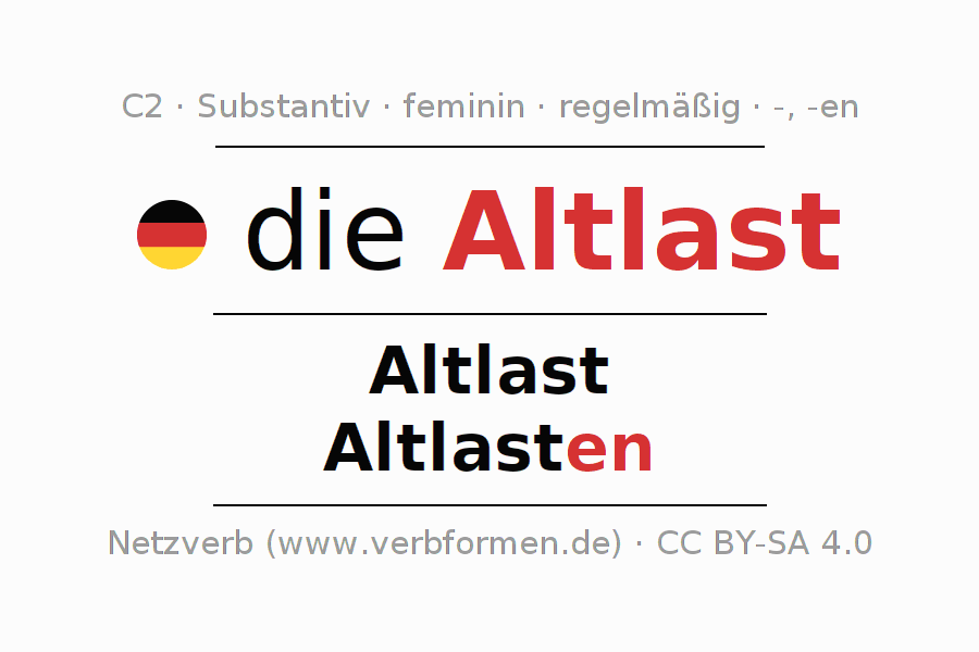 - Plural: die Altlasten, der Altlasten, den Altlasten, die Altlasten