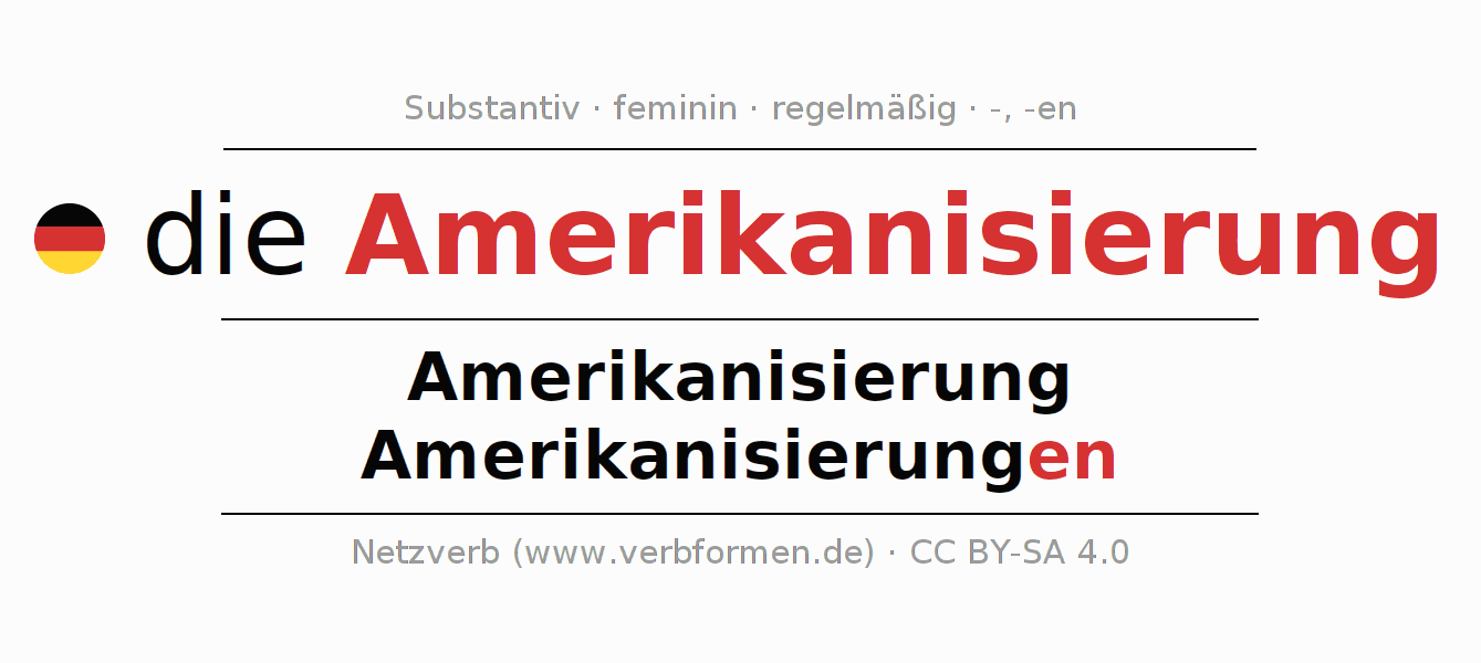 - Singular: die Amerikanisierung, der Amerikanisierung, der Amerikanisierung, die Amerikanisierung