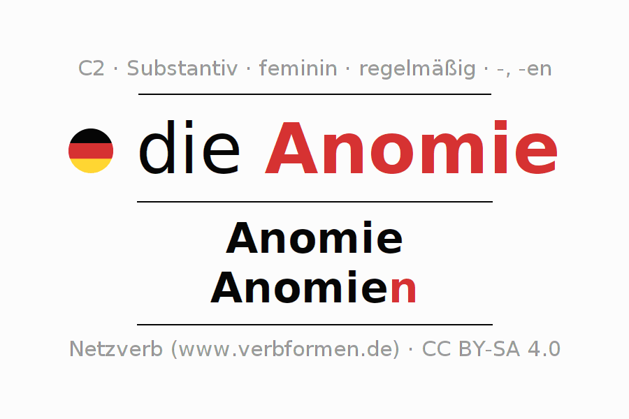 - Singular: die Anomie, der Anomie, der Anomie, die Anomie