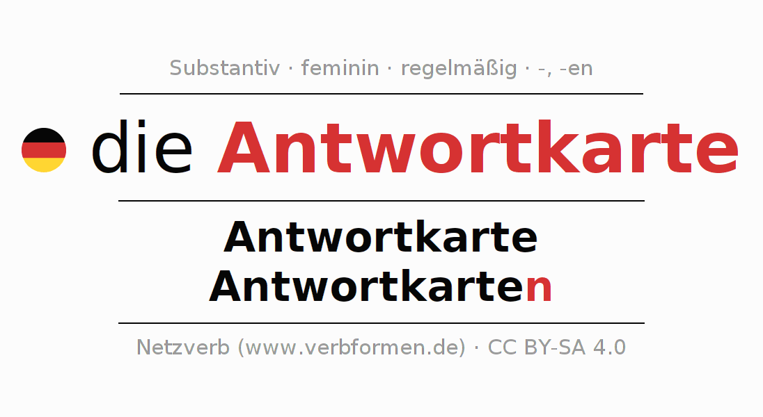 - Singular: die Antwortkarte, der Antwortkarte, der Antwortkarte, die Antwortkarte