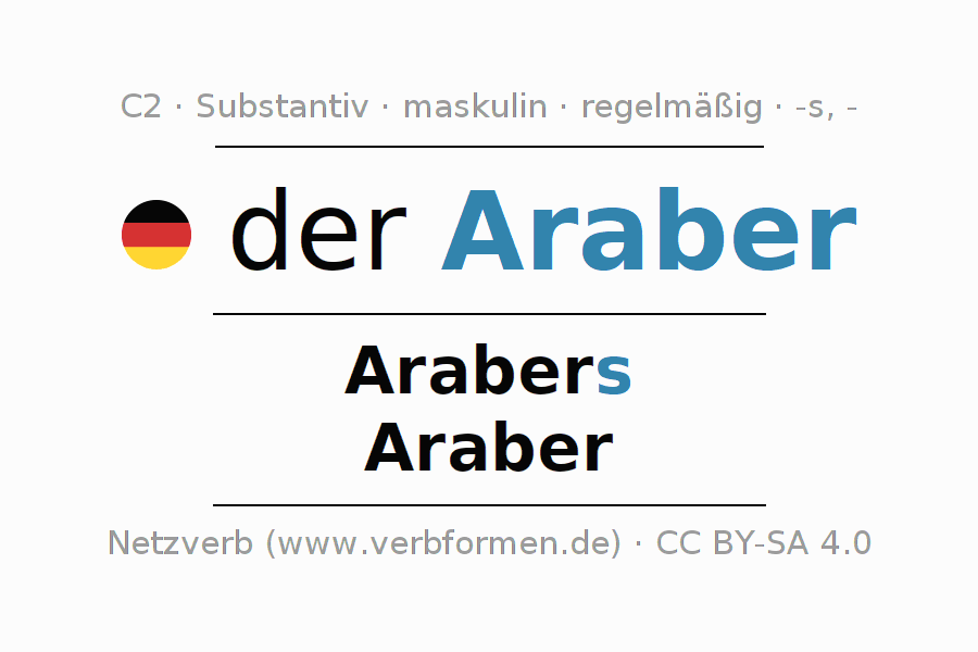 - Singular: der Araber, des Arabers, dem Araber, den Araber