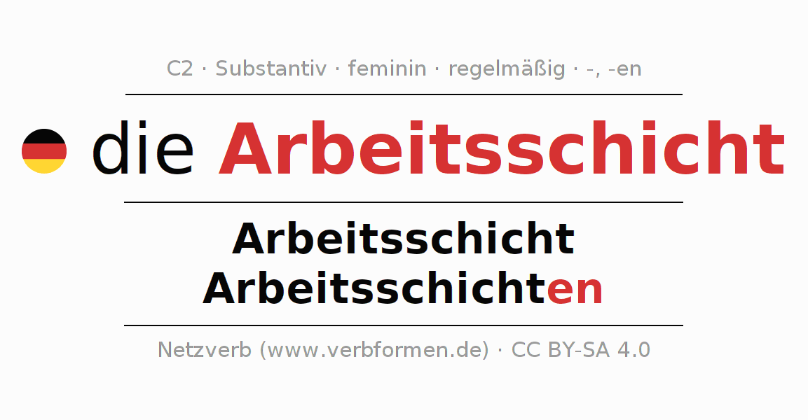 - Singular: die Arbeitsschicht, der Arbeitsschicht, der Arbeitsschicht, die Arbeitsschicht