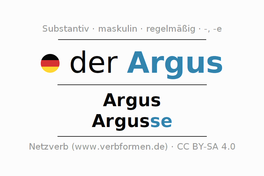 - Singular: der Argus, des Argus, dem Argus, den Argus
