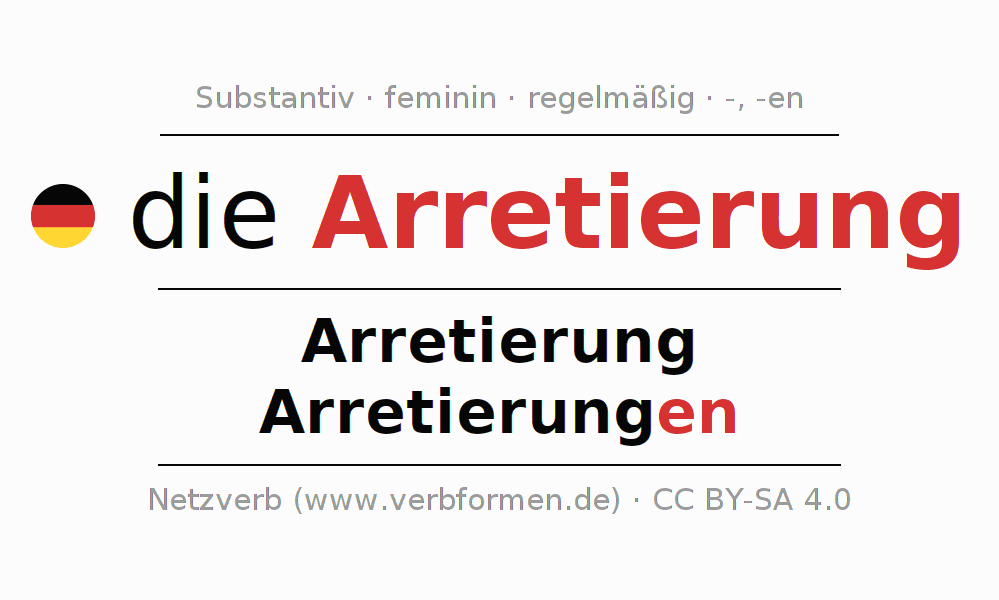 - Singular: die Arretierung, der Arretierung, der Arretierung, die Arretierung