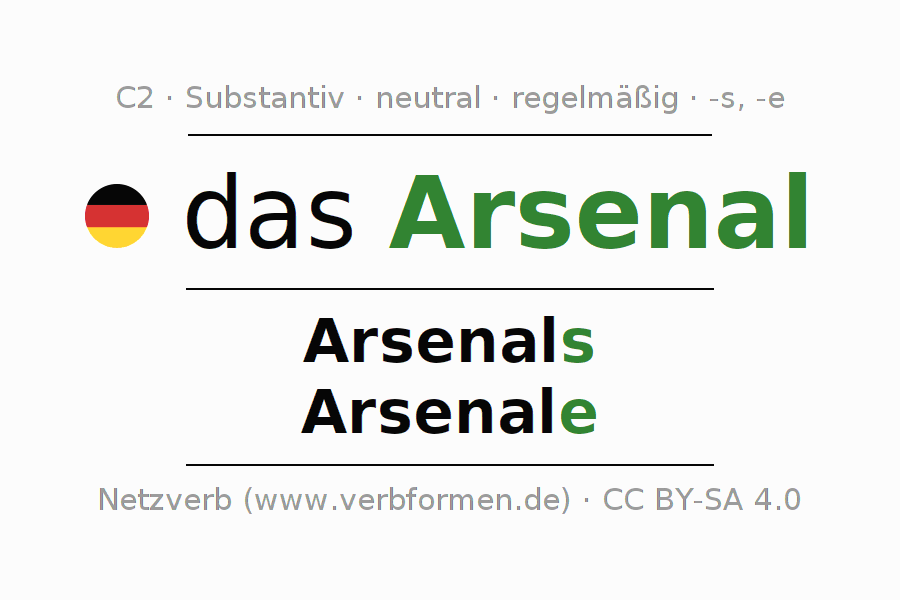 - Singular: das Arsenal, des Arsenals, dem Arsenal, das Arsenal