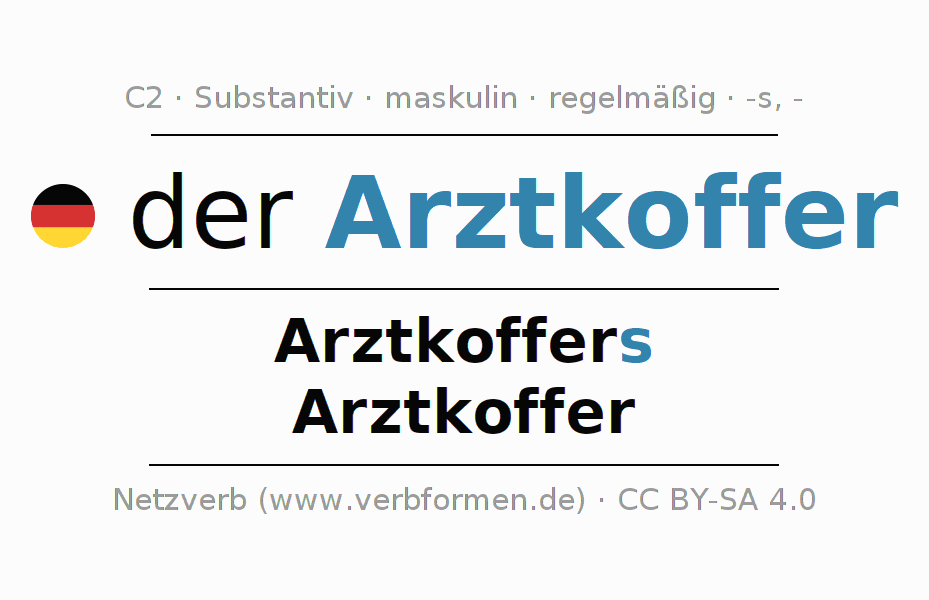 - Singular: der Arztkoffer, des Arztkoffers, dem Arztkoffer, den Arztkoffer