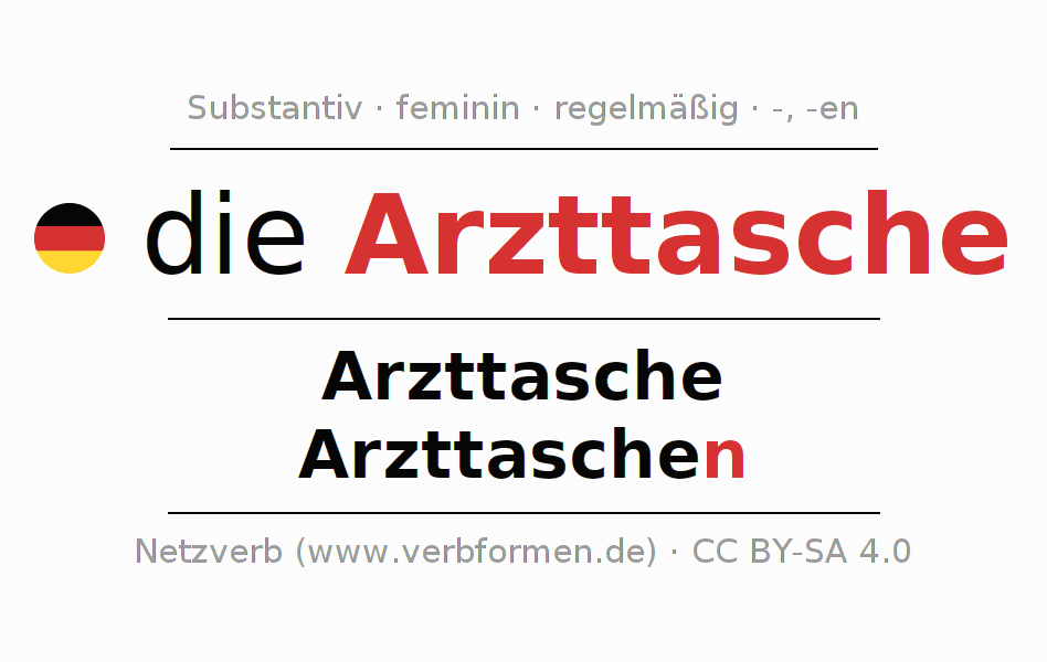 - Singular: die Arzttasche, der Arzttasche, der Arzttasche, die Arzttasche