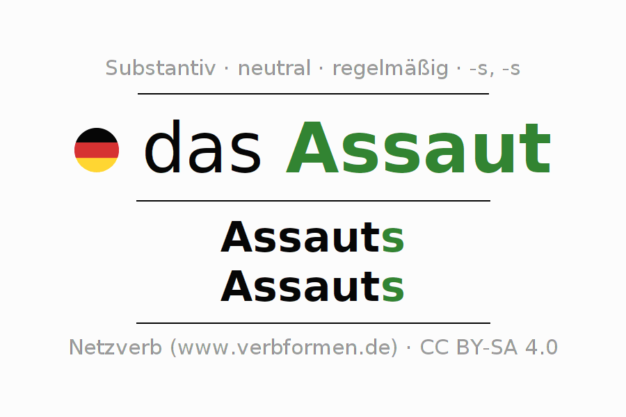 - Singular: das Assaut, des Assauts, dem Assaut, das Assaut