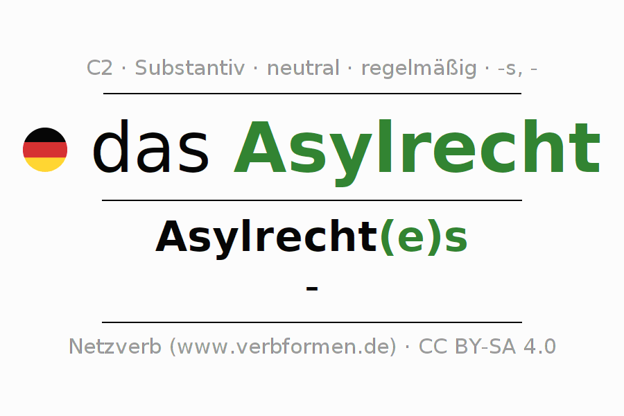 Zusammenfassung aller Deklinationsformen des Substantivs, Nomens bzw. Nennworts Asylrecht in allen Fällen bzw. Kasus
