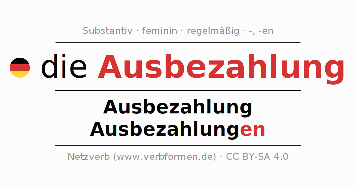 - Singular: die Ausbezahlung, der Ausbezahlung, der Ausbezahlung, die Ausbezahlung
