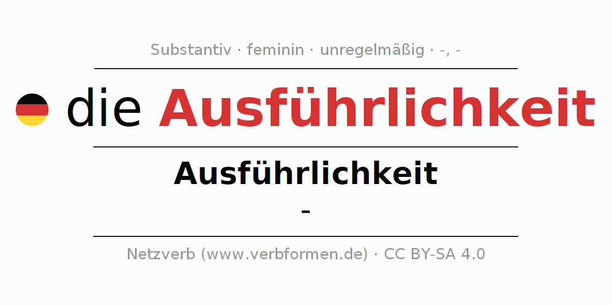 - Singular: die Ausführlichkeit, der Ausführlichkeit, der Ausführlichkeit, die Ausführlichkeit