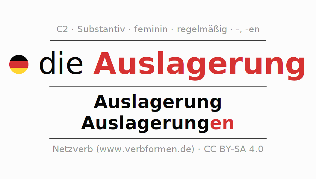 - Singular: die Auslagerung, der Auslagerung, der Auslagerung, die Auslagerung