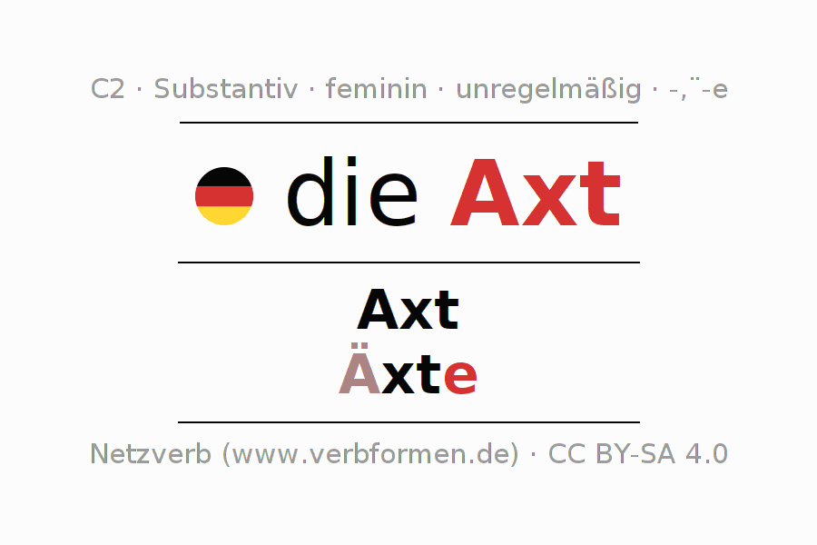 - Singular: die Axt, der Axt, der Axt, die Axt