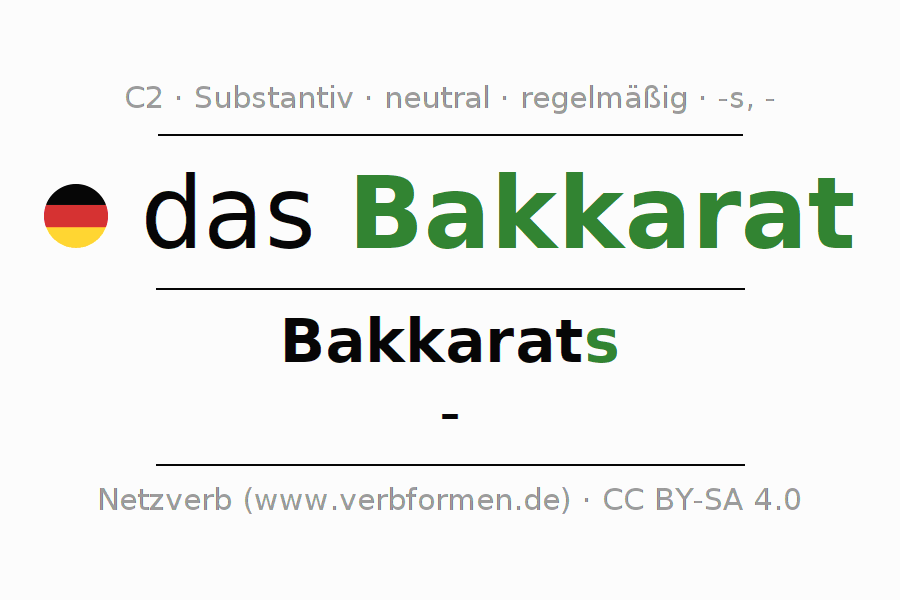 - Singular: das Bakkarat, des Bakkarats, dem Bakkarat, das Bakkarat