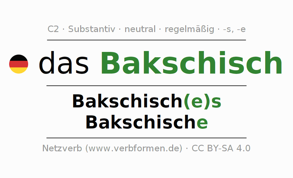 | Dat. | dem Bakschisch(e) | den Bakschischen |