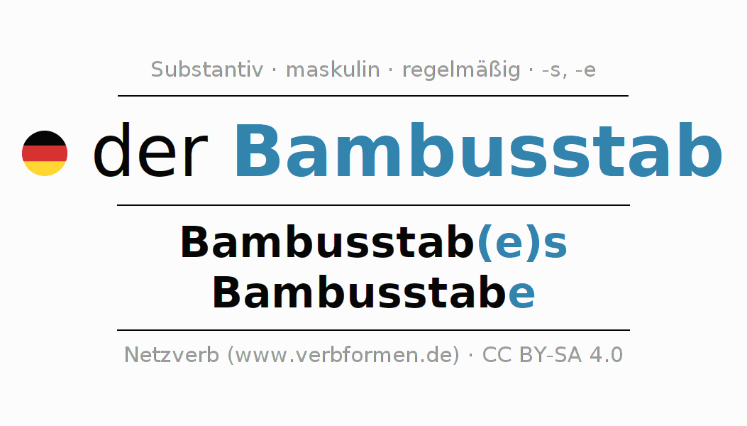 - Singular: der Bambusstab, des Bambusstab(e)s, dem Bambusstab(e), den Bambusstab