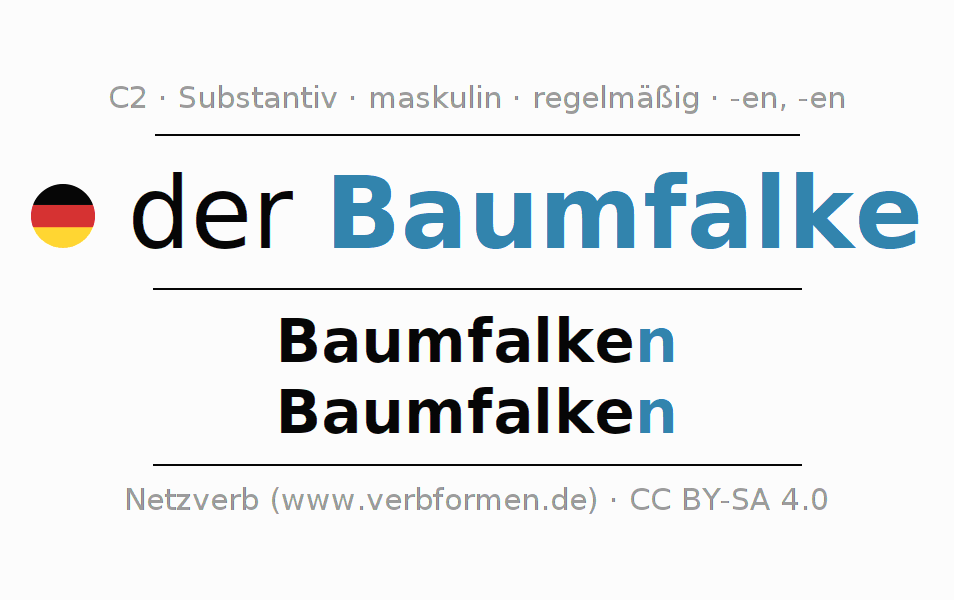 - Singular: der Baumfalke, des Baumfalken, dem Baumfalken, den Baumfalken