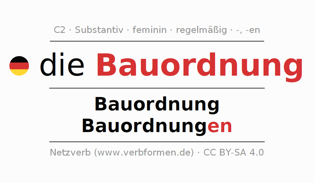 - Singular: die Bauordnung, der Bauordnung, der Bauordnung, die Bauordnung