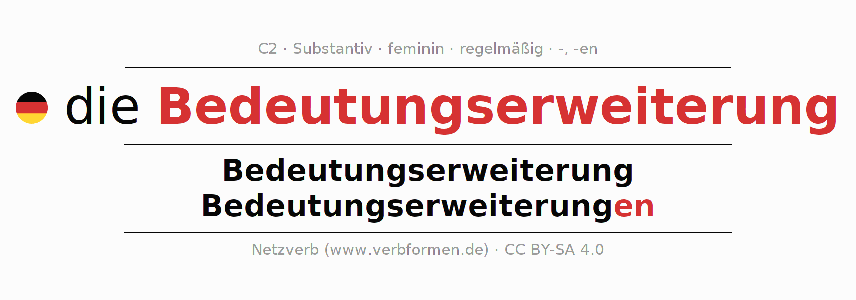 | Nom. | die Bedeutungserweiterung | die Bedeutungserweiterungen |