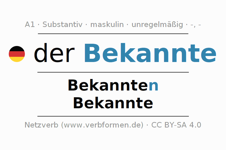 - Singular: der Bekannte, des Bekannten, dem Bekannten, den Bekannten